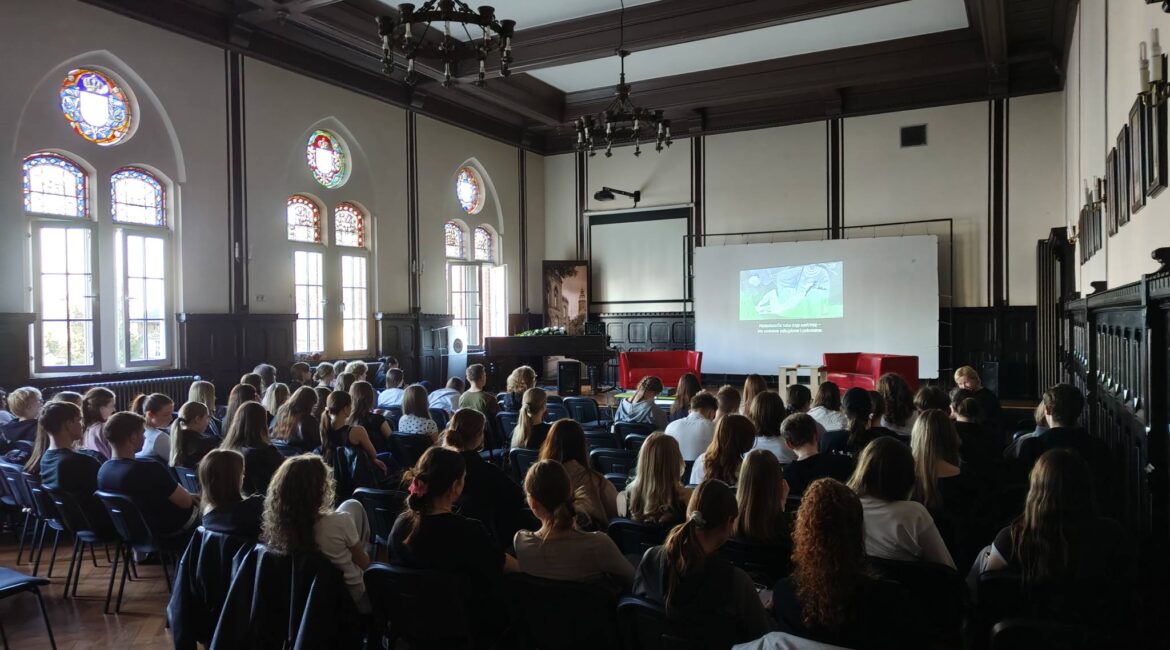 Notatki, pytania i ostatnie powtórki zamiast tradycyjnego weekendowego luzu. Tegoroczna Maturnocka przyciągnęła nie tylko naszych uczniów, ale też maturzystów z Zielonej Góry, Leszna i Głogowa. To już znak rozpoznawczy naszego wydarzenia – spotykają się tu ci, którym naprawdę zależy. W pełnej auli przypominamy lektury, konteksty, skojarzenia, strategie. Pracujemy z sensem. To wieczór wspólnej nauki, wymiany energii i wiedzy oraz przekonania, że matura to nie loteria.
