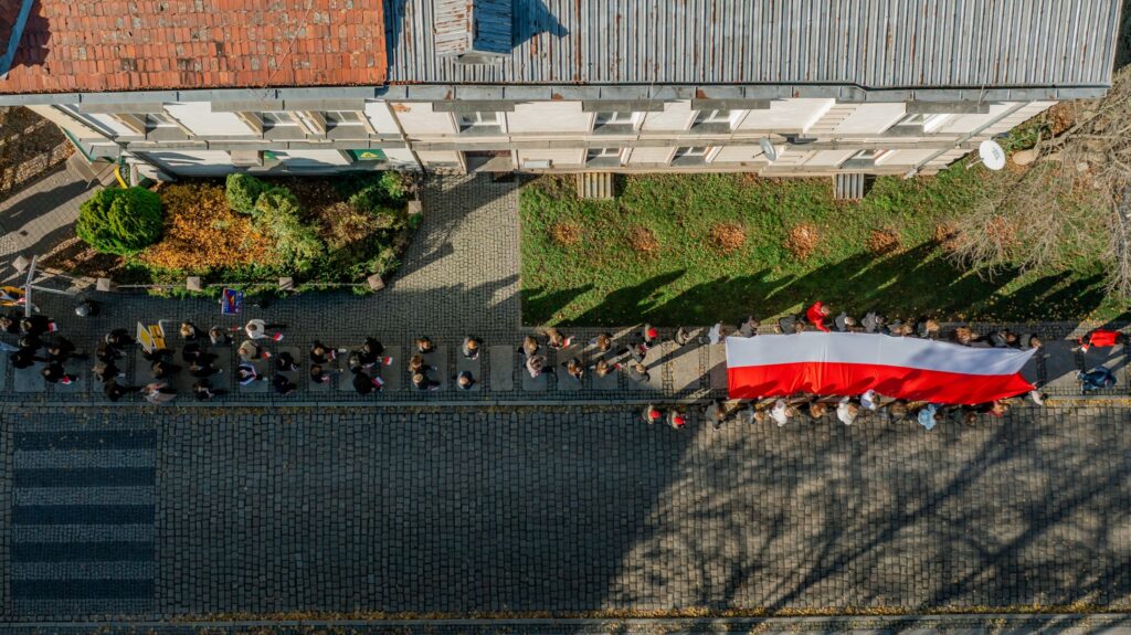 • przemarsz z flagą ulicą Lipową i Głogowską